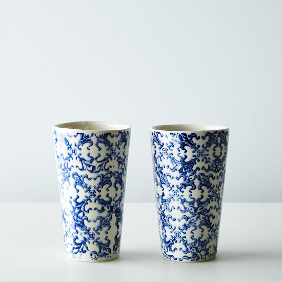 I really love mugs without handles for some reason, and I'm always big on blue and white, so these mugs from Art et Manufacture are very much up my alley.