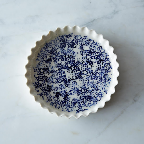 A beautiful ceramic tart plate with a fluted edge and unique, one-of-a-kind design. And I have such an affinity for blue and white.